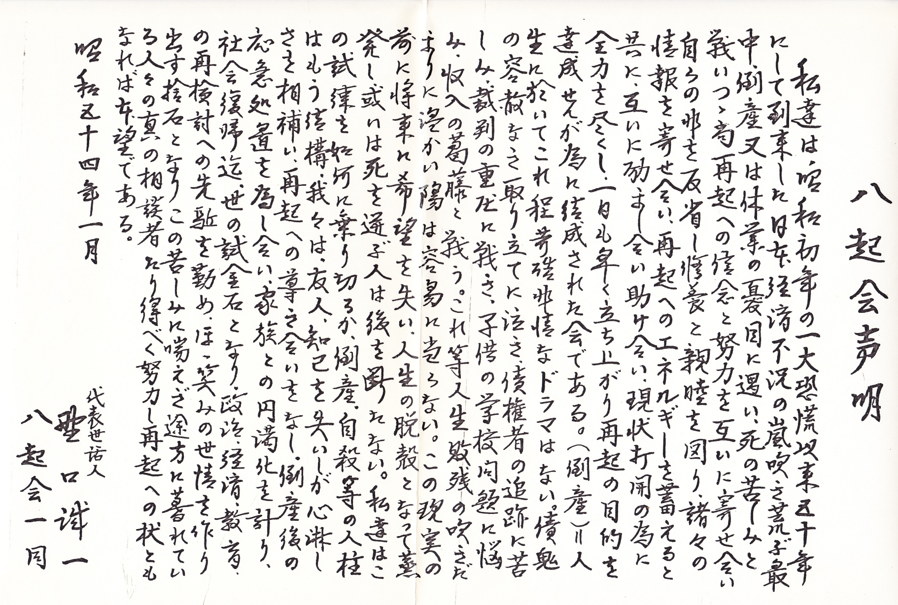 八起会声明 (昭和54年1月)