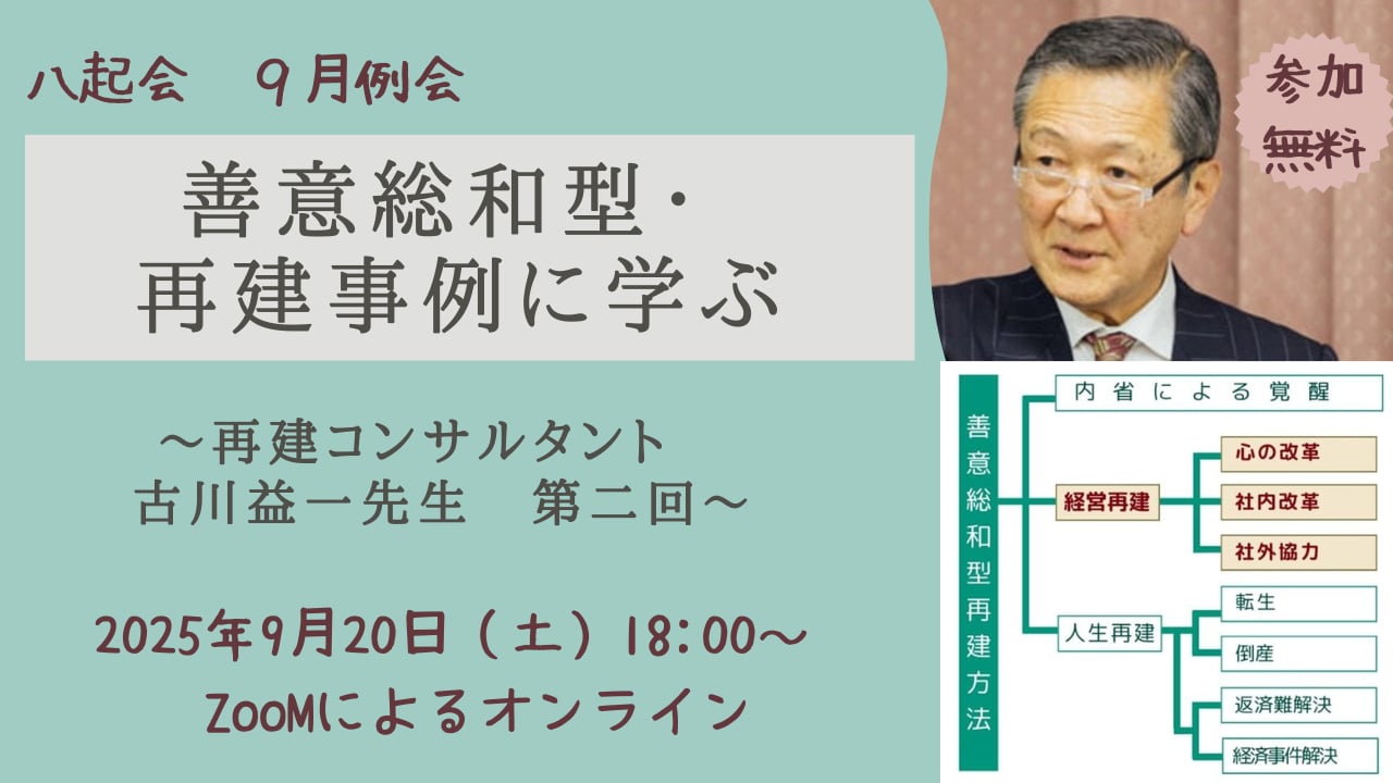 八起会 9月例会(2025/09/20)「善意総和型・再建事例に学ぶ ②」