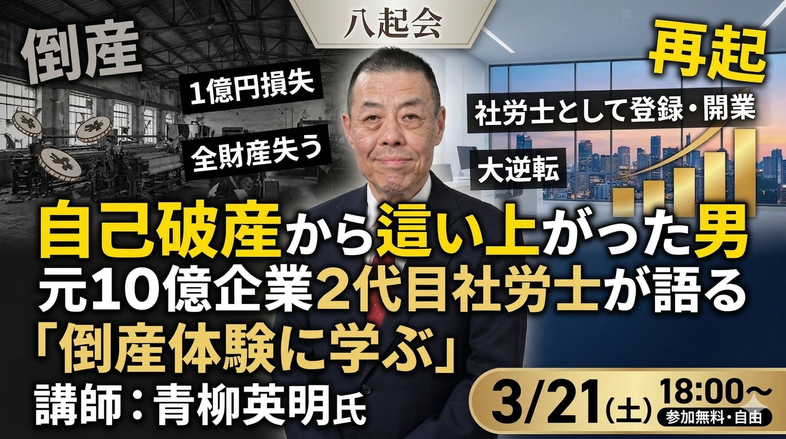 八起会 3月例会(2026/3/21)「青柳英明さんの倒産体験に学ぶ」