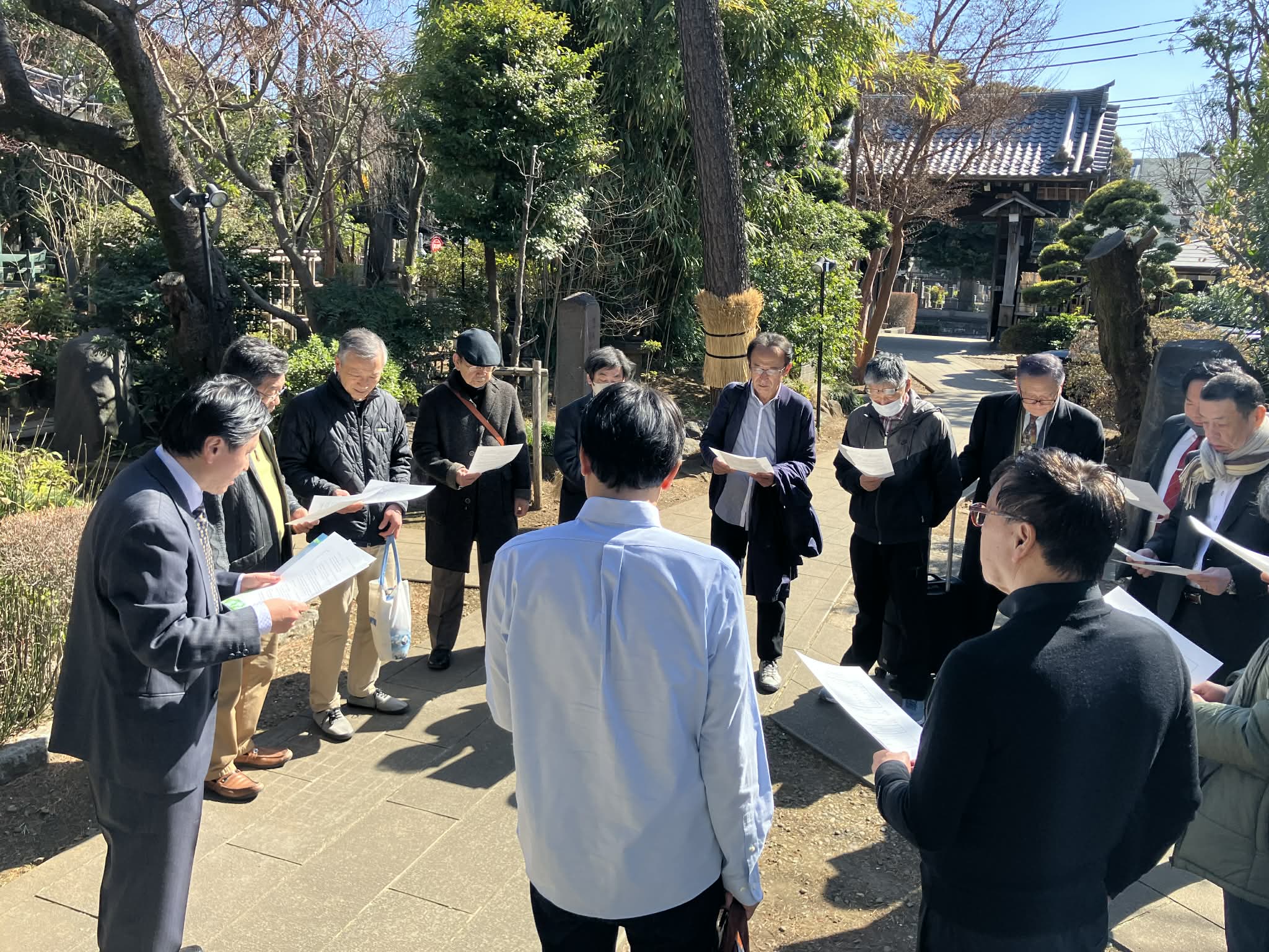 2016年2月18日に野口会長が亡くなられて以降、毎年恒例となっているお墓参りを、日暮里駅近くの本行寺にて12:15から行い、16名の会員が参加してくださいました。