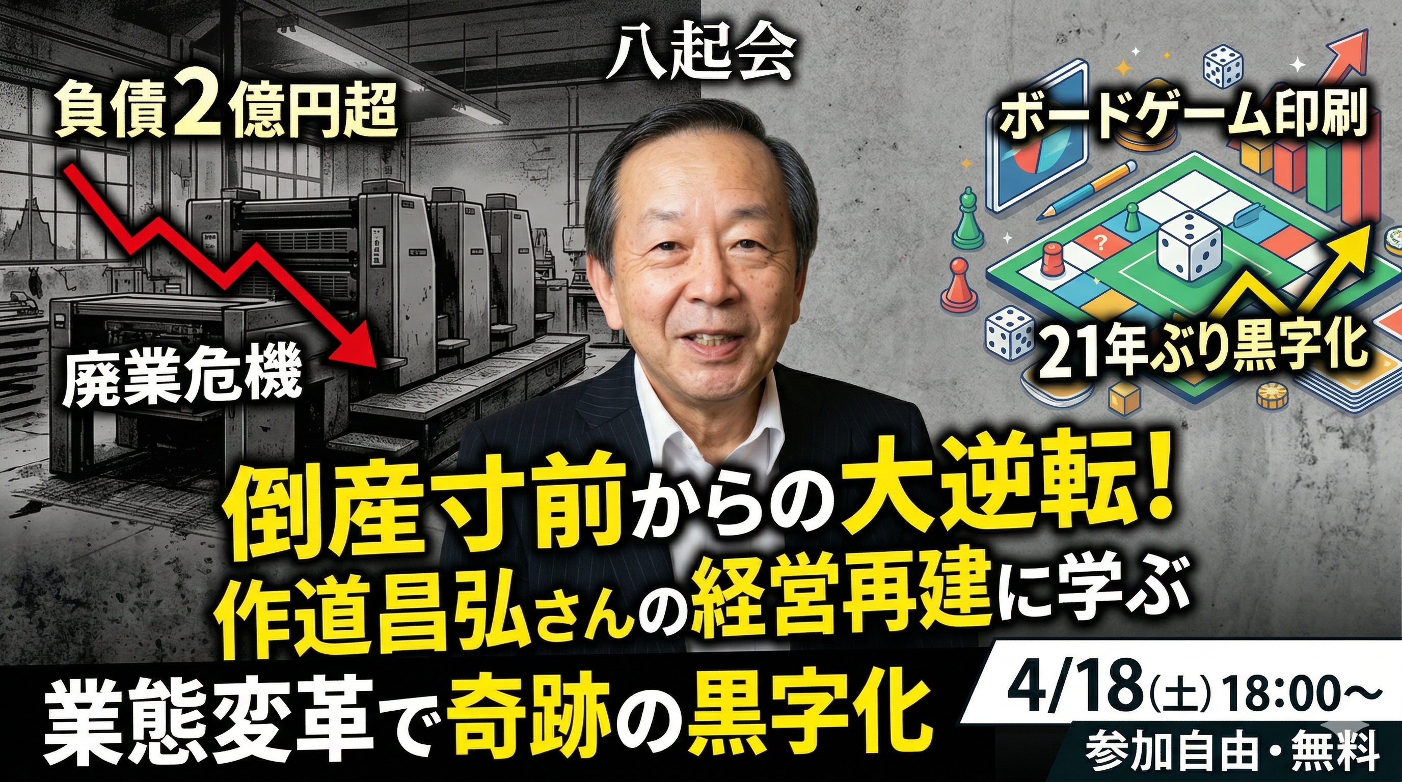 八起会 4月例会(2026/04/18)「作道昌弘さんの倒産体験に学ぶ」